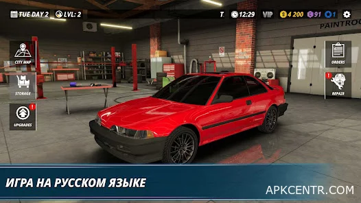 The game is quite interestingly implemented and there is a change of day and night in it, so there is a certain rhythm of the game, and you have to organize the work by time. As you progress through the game you will develop your skills and take on more difficult car repair orders. In addition to repairs, you can collect your car collection, but for this you have to earn money.